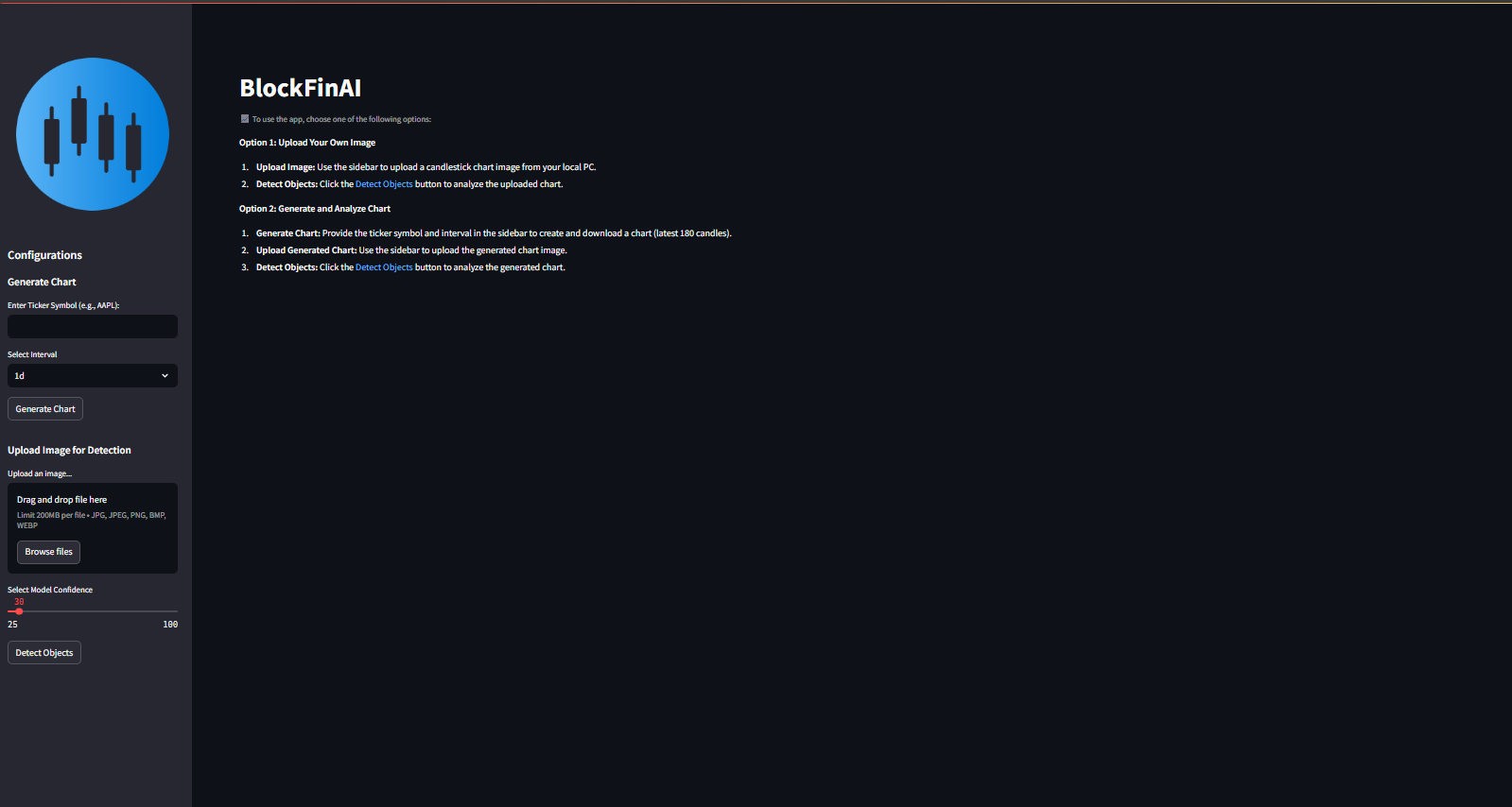 BlockFinAI is an advanced application designed for detecting patterns in stock and cryptocurrency charts using deep learning techniques. Inspired by the YOLO Object Recognition Algorithm research, this project implements YOLOv8 and integrates it into a user-friendly Streamlit app. BlockFinAI automates chart pattern recognition to empower traders and analysts.