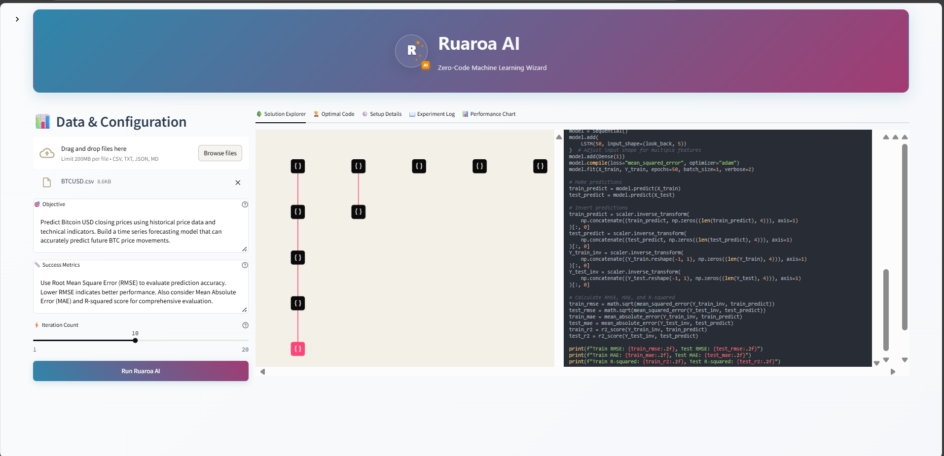 Ruaroa AI is your personal ML wizard that conjures complete machine learning pipelines from simple natural language descriptions. Just describe what you want, upload your data, and watch the magic happen! Using advanced AI reasoning and iterative experimentation, it crafts production-ready solutions that would typically require weeks of expert development.
